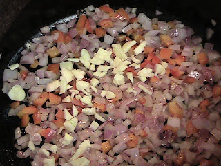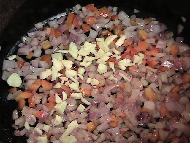 Allow to soften, about 3 minutes. Add the chopped garlic.