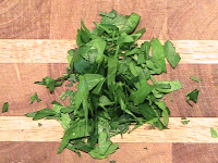 Roll the leaves together, and with a sharp knife, slice through the bundle to get small pieces.