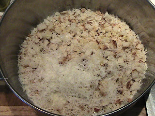 Pre-heat oven to 350 degrees. Lightly oil a 9 x 12 inch baking pan. I use glass but you can use metal.