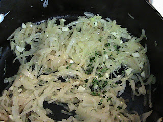 Add the onions and season with salt and pepper. Cook over medium-low heat until the onions are very soft and begin to caramelize or turn golden brown, about 15 minutes. Add thyme and garlic, stir together and cook for about 1 minute. Set aside.