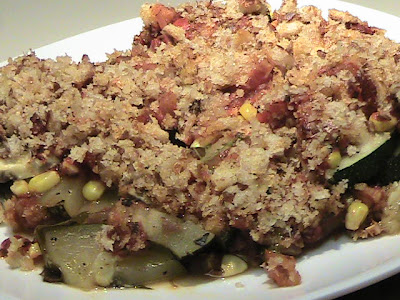 Put into a pre-heated oven and bake for about 30 minutes or until the bread crumb topping turns a golden brown and the vegetables are soft, but not mushy.