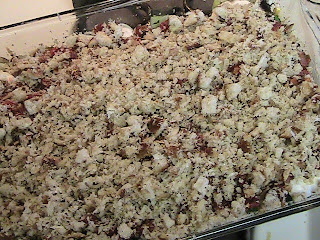 Spread the bread crumb topping over the vegetables in the baking dish.